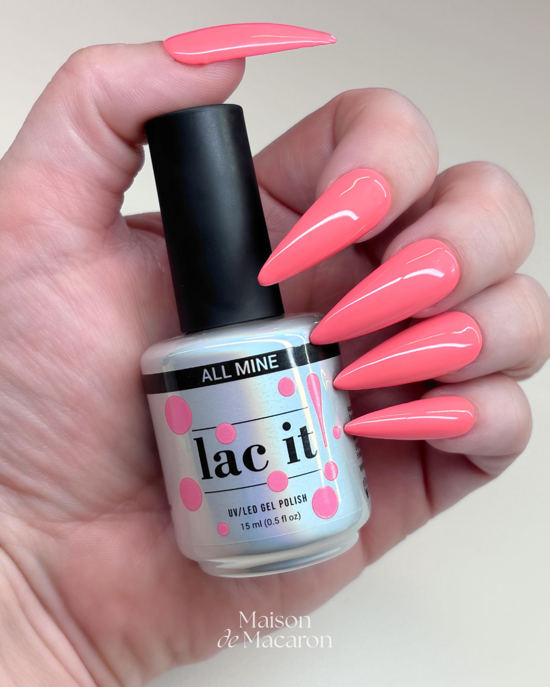 3. Colour – Apply 1–2 thin coats of lac it! Gel Polish, curing 60s LED between each.
